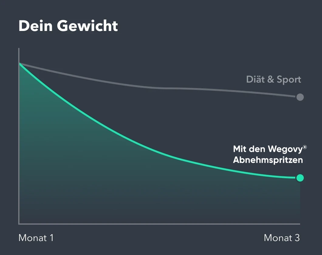 Die Wegovy® Abnehmspritzen verbinden eine hochwirksame klinisch bewährte Therapie (kompatibel mit Potenzmitteln) zur Stabilisierung des natürlichen Hungergefühls mit gratis Zugang zu Arzt & Ernährungsberater — für sichtbaren Behandlungserfolg und ein anhaltendes Wohlfühlgewicht.